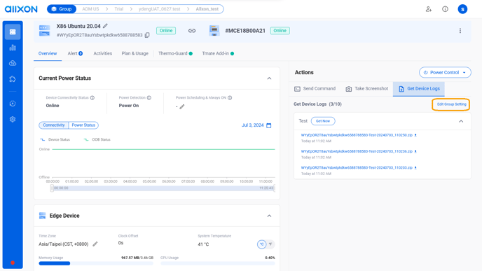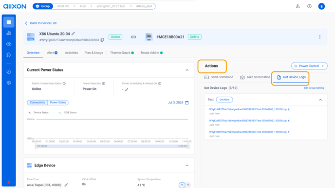 The Get Device Logs feature enables easy access to crucial information from your edge devices for monitoring and analysis. It allows you to efficiently retrieve and review essential logs.