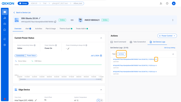 - After adding the log settings, return to the Device Details Page and click the Get Now button to retrieve your device logs. You can also click on the